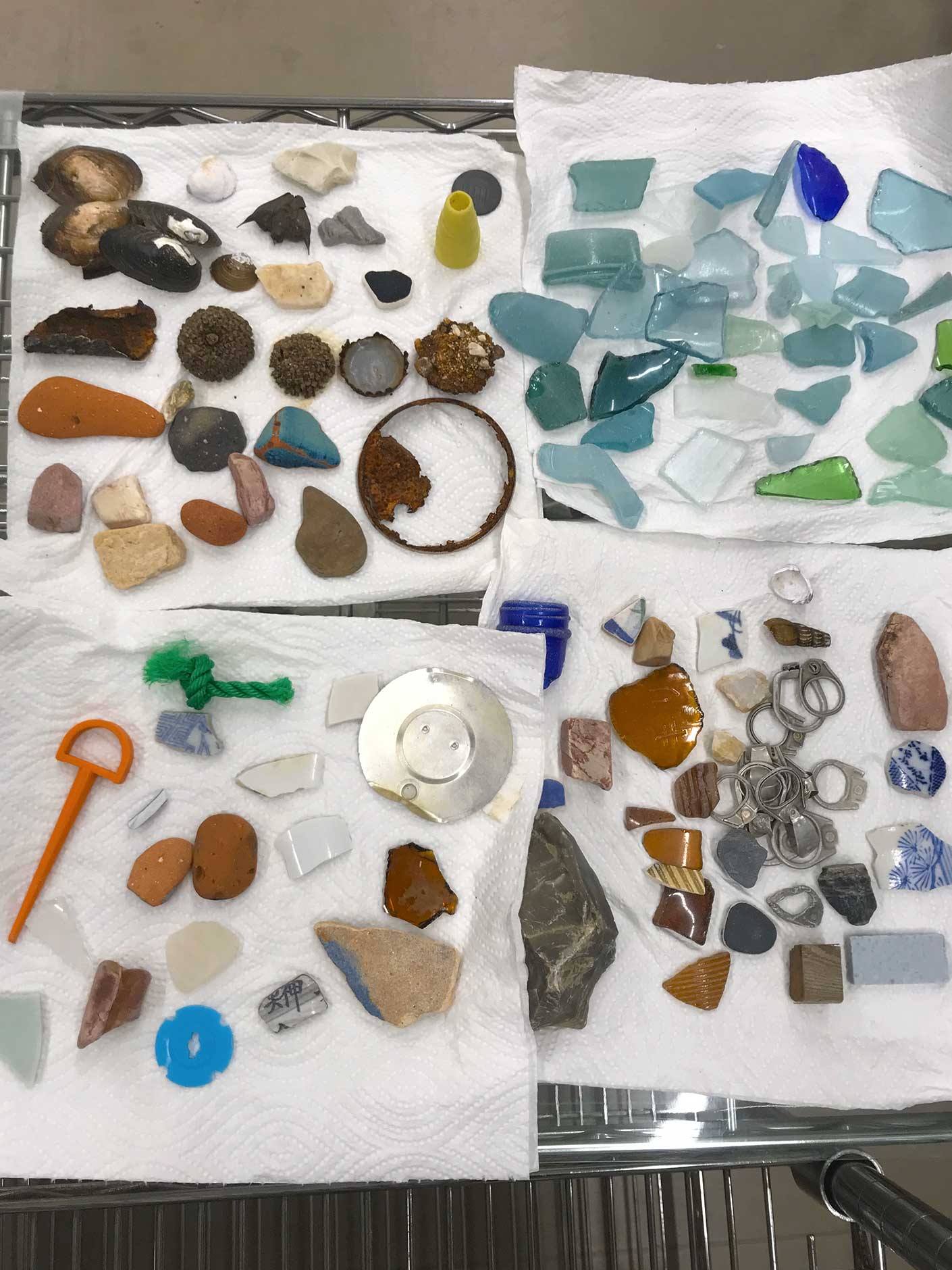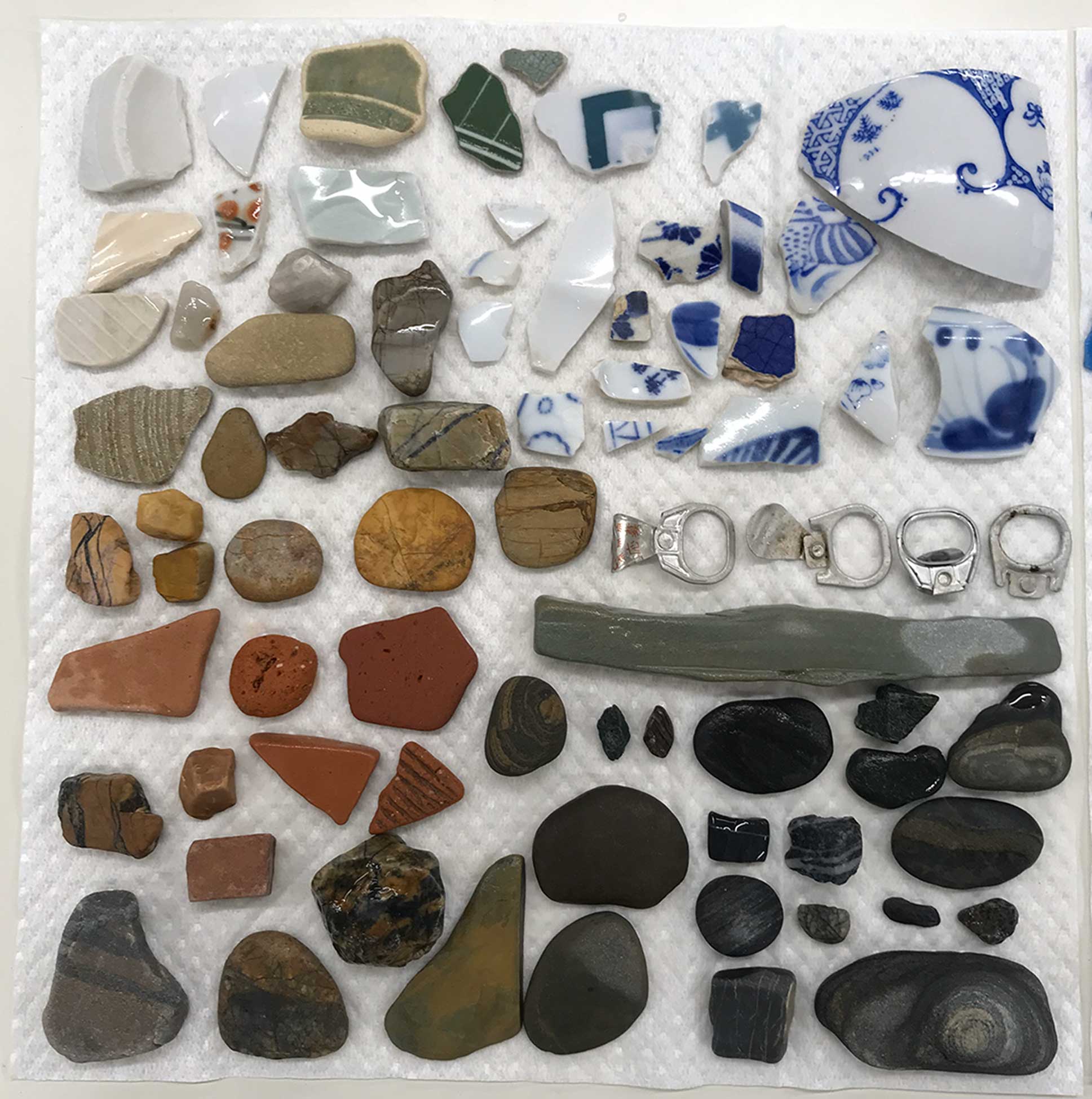 シーグラスや陶器のかけらだけではなく、プラスチック片や何の変哲もない石などそれぞれが気になったものをひたすら拾います。